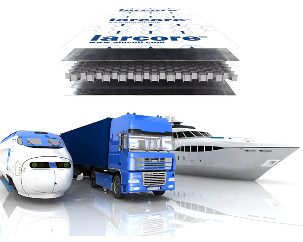 Through a proprietary continuous manufacturing process, Alucoil produces its structural aluminium honeycomb panel Larcore to fit perfectly in numerous sectors such as marine, railway and industrial applications. It is an extremely lightweight and rigid panel which is non-combustible, recyclable, insulating, and energy efficient. After an intensive R&D effort, Alucoil has managed to combine the natural qualities of the honeycomb structure with its industrial experience in the manufacturing of structural metal panels, obtaining a final product capable of offering complete solutions for different project requirements.